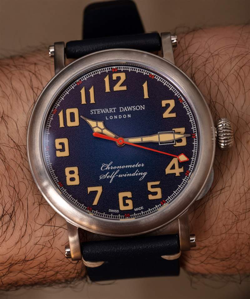 表盤上方是一塊扁平的 AR 涂層藍寶石水晶,我實際上認為稍微圓頂會更好。事實上,Stewart Dawson 需要花費更多并處理更多關于正確的 AR 涂層技術的頭痛問題(這在曲面上更具有挑戰(zhàn)性),但我認為這將有助于使這看起來像一個均勻的更貴的時計。