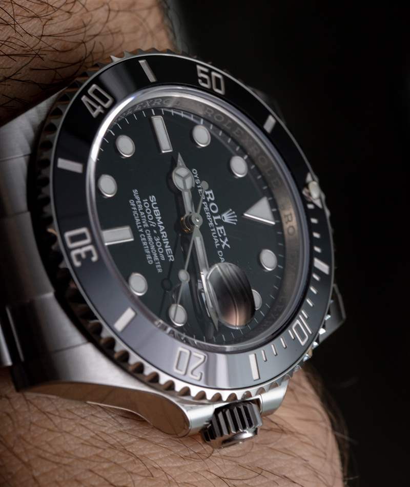 最大的設計差異是表耳,新一代勞力士潛航者腕表的表耳更纖細。這使手表的外觀更加勻稱,但鑒于勞力士將表殼直徑增加了約 1 毫米,具有較窄表耳的新型 Submariner 實際上與具有較寬表耳的舊 Submariner 幾乎相同。勞力士表示,舊款 Submariner 的額定寬度為 40 毫米,而新款 2020 Submariner 型號的寬度為 41 毫米。這在很大程度上是正確的,但據我們了解,新舊 Submariners 的實際佩戴尺寸差異在 1 毫米以下。