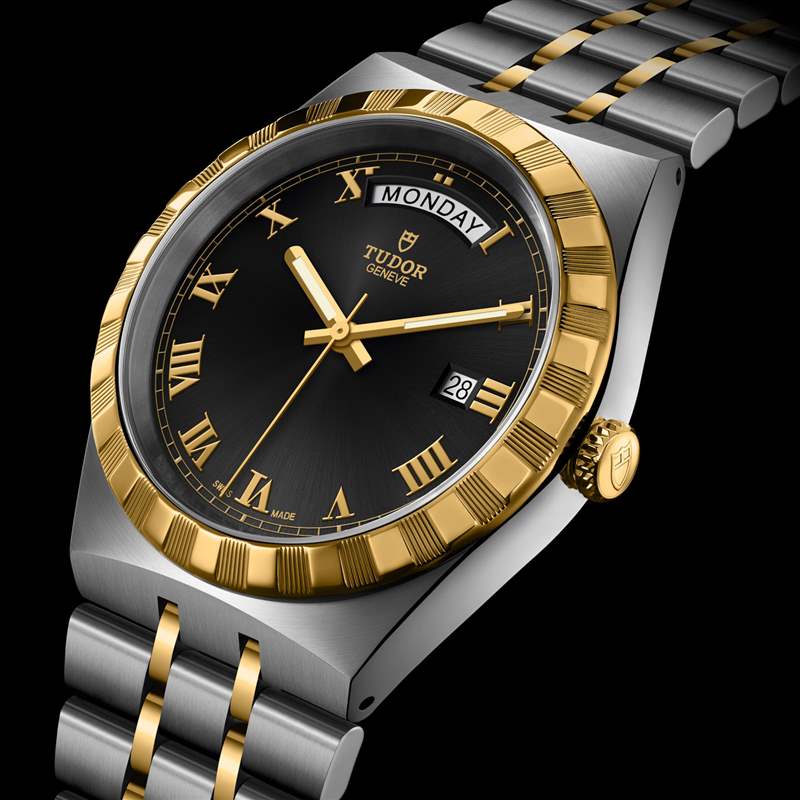 除精鋼外,帝舵還提供皇家雙色精鋼和 18k 黃金版本(28603/28503 系列)。對于后者,18k 金用于缺口表圈、表冠和一些手鏈鏈節。皇家配備四種男士表盤顏色,包括黑色、藍色、銀色和金色。確實,在許多豪華手表都采用鮮艷色彩的時代,色彩并不令人興奮,但皇室成員本質上一直是保守的……然而,帝舵確實提供了一些帶有部分鑲鉆時標的表盤選項,以補充其他全羅馬數字標記表盤.