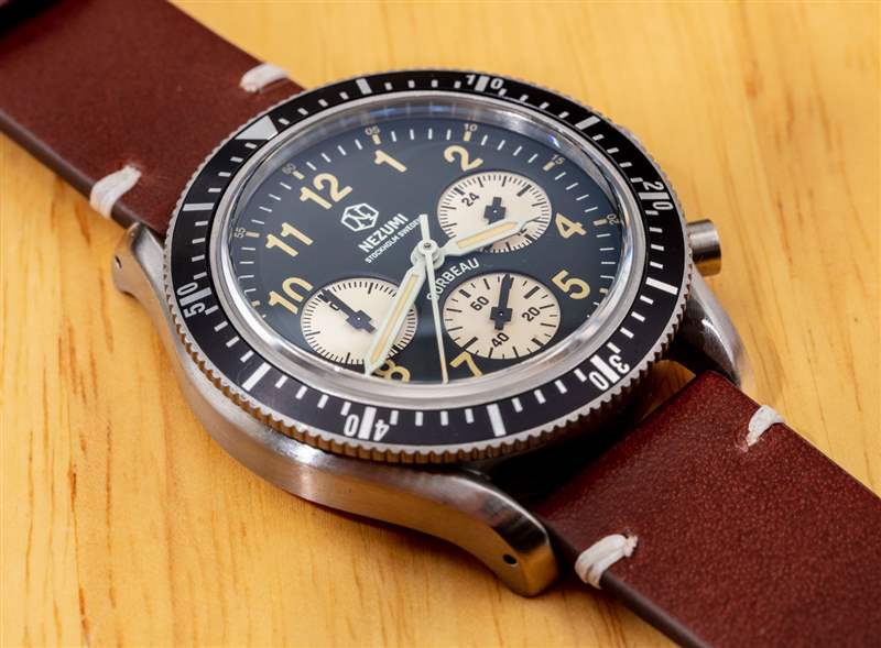 在顏色和風格方面,Nezumi 很好地捕捉到了許多愛好者喜歡的手表,這些手表幫助激發了這款特殊的 Corbeau CQ2.202。根據 Nezumi 的說法,這款手表的靈感主要來自 Lemania Air Force Viggen 和 Heuer Budeswehr——但這里也有其他元素。表盤具有多個層次和良好的紋理,具有高易讀性。對稱的三記錄計時碼表以及無日期窗口有助于保持表盤優雅和美觀。這款 Corbeau 的黑色和沙色流明是一種常見的調色板,最終看起來非常有吸引力。目前的 Nezumi Corbeau 系列至少有六款手表,有各種活潑的表盤顏色和自然拋光或黑色涂層鋼表殼。