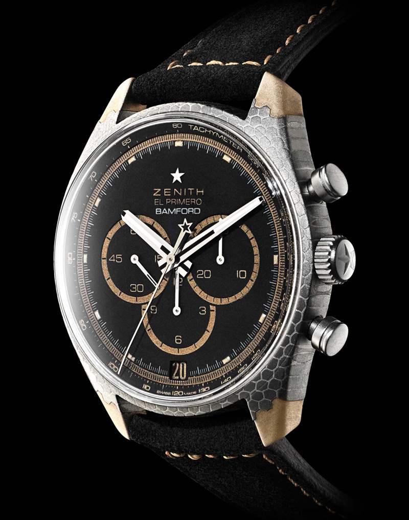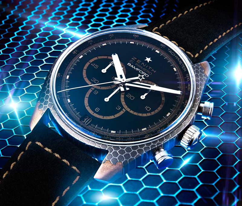 Bamford 帶來了 Black Badger 的特殊表殼材料,以及表殼材料的加工方式,這款限量 20 枚的手表系列被稱為 Zenith El Primero “超導(dǎo)體”,因為表殼材料來自電氣工程的觀點,一種超導(dǎo)體(相對于絕緣體)的電。作為鐘表,這對手腕有影響嗎?不,但超導(dǎo)體銅鈮混合物也具有一些有趣的美學(xué)品質(zhì)。如果處理得當,這種銅鈮金屬結(jié)構(gòu)在材料中具有令人驚嘆的蜂窩狀陣列,經(jīng)過部分酸洗的表殼進一步使這一點變得有趣。我不是案件材料本身的專家,