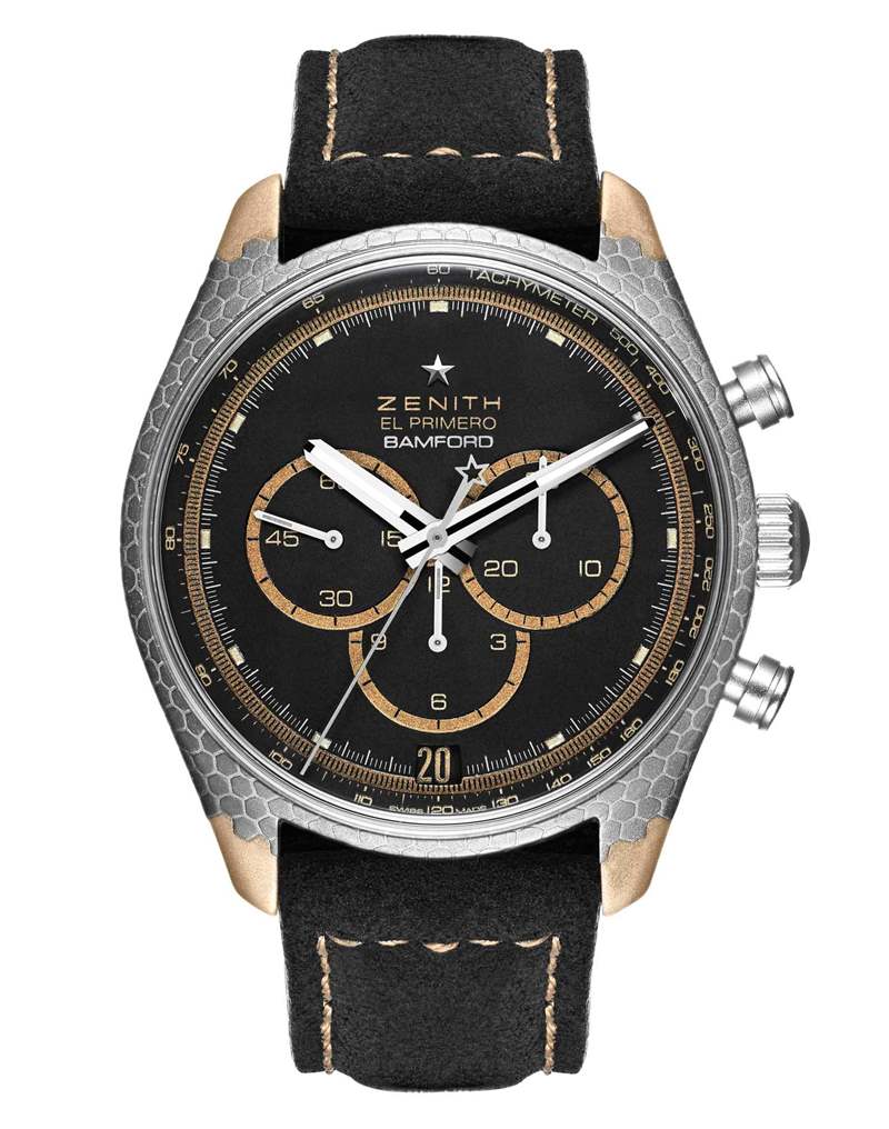 手表內(nèi)部是瑞士制造的真力時自產(chǎn)機芯 El Primero 400B 自動計時機芯。與所有 El Primero 機芯一樣,400B 以 5Hz 運行,動力儲存約 50 小時。該機芯由 326 個零件組成,具有時間、日期和 12 小時計時碼表顯示。對于 Bamford Watch Department X Black Badger Zenith El Primero Superconductor 腕表的表盤,Zenith 設(shè)計了傳統(tǒng)的 El Primero 風格表盤,但顏色與表殼的主要色調(diào)相匹配,計時小表盤采用銅質(zhì)紋理,撥號外圍環(huán)。廣告訊息廣告信息結(jié)束