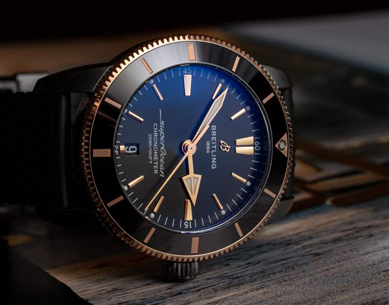 百年靈 Superocean Heritage II 44 Beverly Hill 限量版從更大的 44 毫米寬 Superocean Heritage II 表殼開始,并在基礎鋼上涂上炮銅灰色 DLC(高度耐刮擦的類金剛石碳)。表圈采用 18k 紅金飾邊,表針和時標采用相配的紅金色調。腕表搭配黑色橡膠表帶,其網格圖案與現有的網狀金屬(米蘭尼斯)表鏈相似。如今,Superocean Heritage 仍然是百年靈銷售的絕對暢銷時計系列。您可以在此處閱讀我對百年靈 Superocean Heritage II B20 42 腕表的完整評論。廣告訊息廣告信息結束