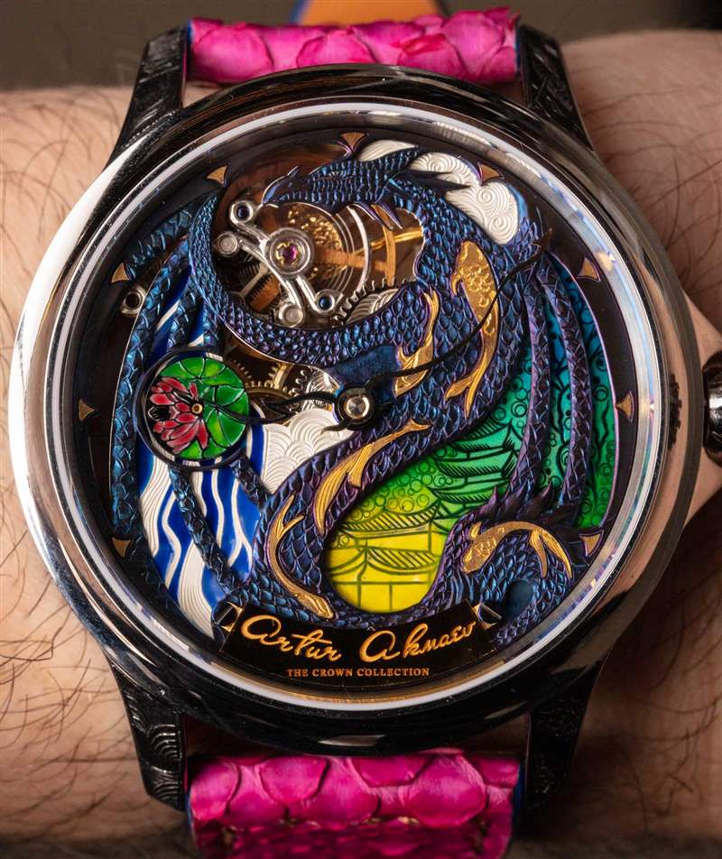 預計將 Akmaev 的作品與瑞士偉人出售的手表中的著名雕刻和琺瑯作品進行比較。這些有可比性嗎?這是個好問題。與傳統制表中的“老字號”經常用于制作真正的高級奢華藝術手表的高度精致的技能相比,Akmaev 無疑是更新和業余的。Artur 更年輕,每款新手表都在學習。我個人看到他的工作在短短幾年內有了顯著改善。訓練有素的專家將能夠查看 Artur 的雕刻并了解可以改進的地方。但問題是,在瑞士品牌的任何地方,您都無法以這樣的價格獲得這樣的定制作品。Akmaev 正在提供一種大多數手表愛好者完全無法使用的服務——不惜任何代價。憑借他的作品,鐘表愛好者可以在他們的手表上以傳統技術、按照他們的條件制作真正的手工藝術品,價格至少是瑞士主要奢侈品公司的 1/4 或更低。所以價值就在那里,你只需要了解如何最好地看待它。