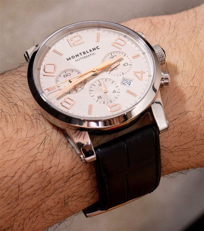 萬寶龍生產了這個特殊的時光行者計時表模型系列,有幾個表盤版本,但在這一代時光行者表殼退役之前,萬寶龍將其呈現為多種形式和不同的機芯。盡管 Timewalker 至少有三個不同的計時碼表版本,但我發現這種帶有瑞士制造 ETA Valjoux 7753 的原創計時碼表是最令人滿意的。參考 101549 有一個銀色表盤,玫瑰金色指針和時標。萬寶龍還生產了一款全銀表盤,配有一條我非常喜歡的棕色表帶。我認為黑色表盤也是可用的。萬寶龍甚至在獨特的金屬表鏈上提供了一個有趣的版本,帶有鏤空鏈節和黑色陶瓷中心鏈節。
