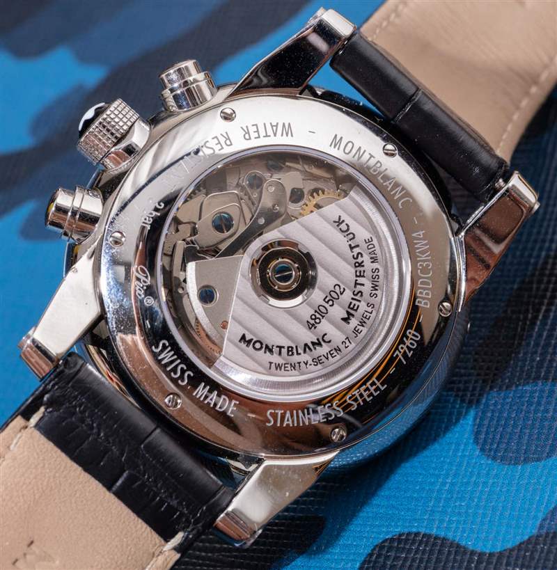 萬寶龍將手表內部的 ETA Valjoux 7753 自動機芯稱為 MB 25.02 機芯。7753 是 7750 的不同版本,計時碼表子表盤的方向為“tricompax”陣列。它還在表殼的 10 點鐘位置設有一個嵌入式日期校正按鈕。機芯以每小時 28,800 次的速度運轉,動力儲存約 46 小時。萬寶龍選擇了該機芯的中等裝飾版本,其中包括自動轉子上的日內瓦條紋拋光貼花,以及除使用藍鋼螺釘外的其他未完成的機芯。