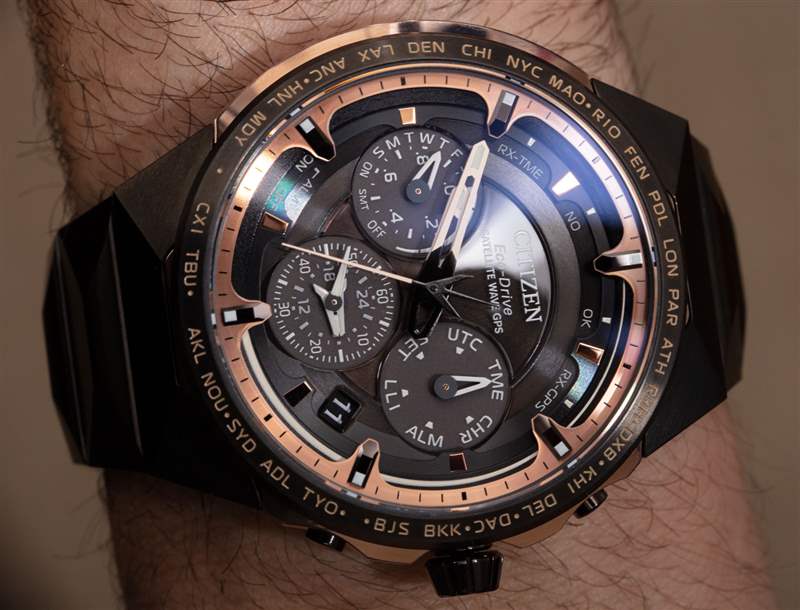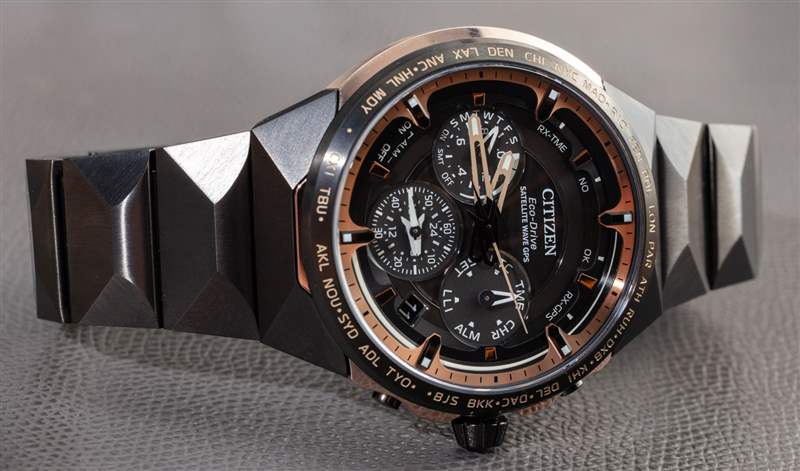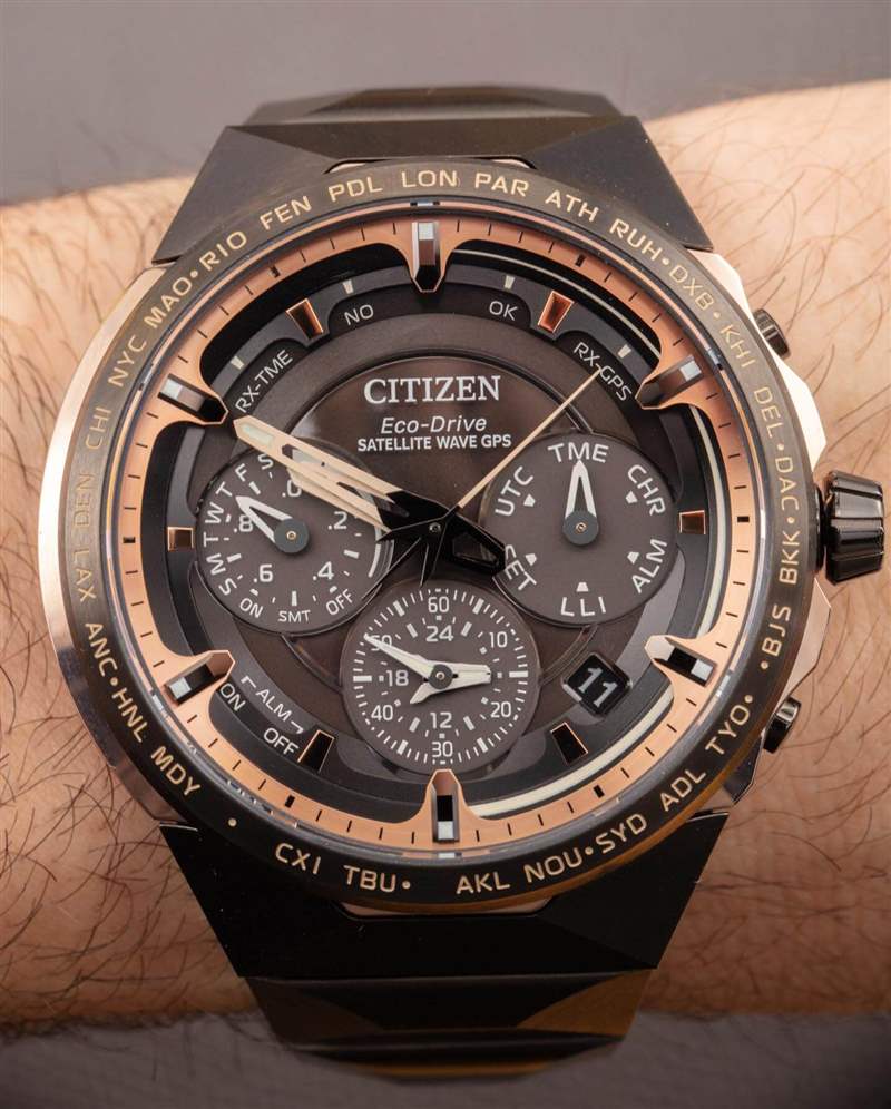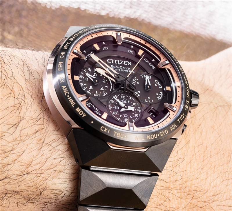 除了與 Super Titanium 表殼和表鏈其余部分的無煙煤色調形成鮮明對比的“Sakura”粉紅金色涂層 Super Titanium 外,該產品還旨在慶祝 Citizen 在 GPS 運動方面取得的成就。日本三大制表商都擁有自己的 GPS 手表——這一重點幾乎完全是日本人(如果不考慮智能手表)。F950 機芯是一個有趣的系統(tǒng),代表了西鐵城多年來制作的一系列系統(tǒng)。在這方面,西鐵城的動作原則上與卡西歐等品牌的動作相似,隨著時間的推移,持續(xù)的改進和新功能不斷積累。