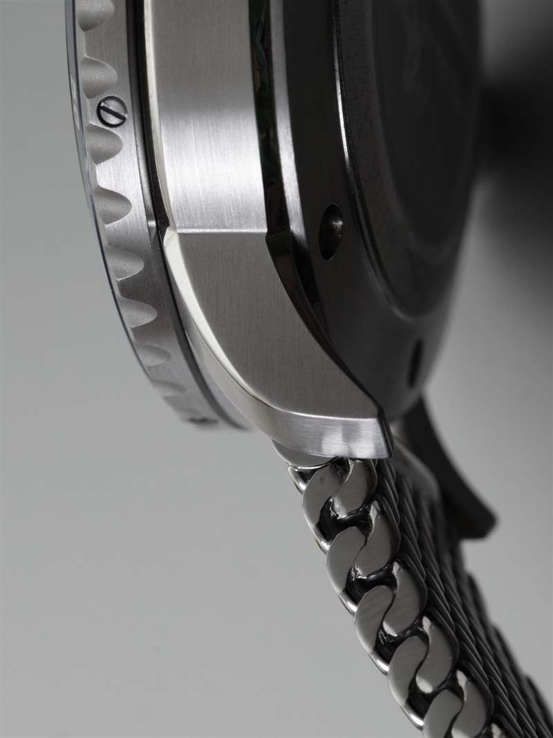 對(duì)于像我這樣的小手腕,大耳有點(diǎn)壓倒性,但不是一個(gè)交易殺手。MeisterSinger 提供這款網(wǎng)狀金屬手鏈和一系列表帶選項(xiàng)的手表。金屬表鏈?zhǔn)菐浉绲倪x擇,但它確實(shí)有一些實(shí)際的缺點(diǎn),其中最明顯的是表殼和表鏈之間的視覺差距(我更喜歡一體式外觀),以及這種風(fēng)格的表鏈根據(jù)手臂毛發(fā)的數(shù)量和形式,可能會(huì)很痛苦。