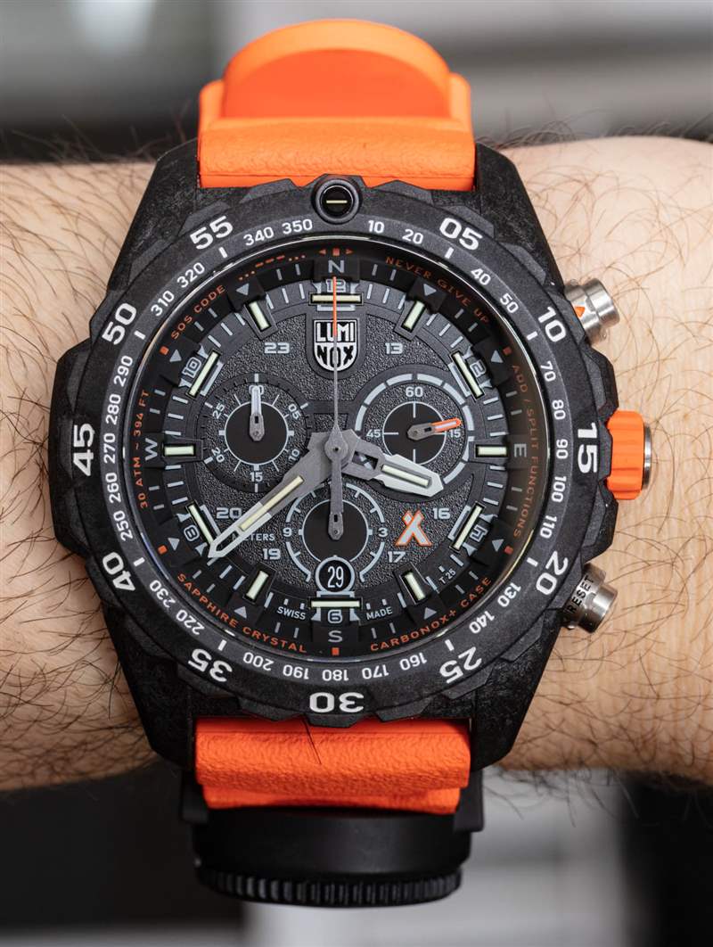 在生存主義場景中,Luminox 在實用性方面實際上更接近卡西歐,盡管這個系列確實有點偏高端(就它的本質而言)。雖然 Bear Grylls 生存手表目前的起價低于 450 美元,但這款更高級的 Bear Grylls 生存大師系列 3749 的價格接近 900 美元。參考 3749 也加入了參考 3741,除了表帶外,它是相同的手表,黑色與 3749 的紋理亮橙色表帶(由天然橡膠制成)。