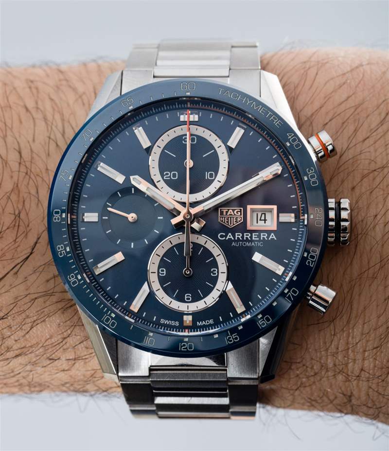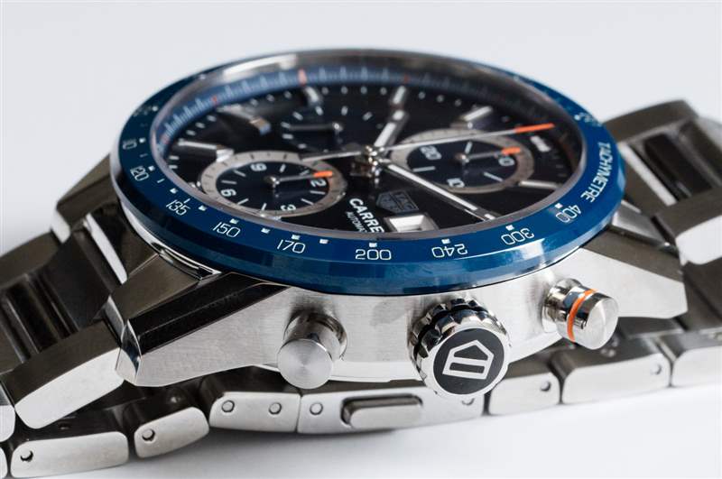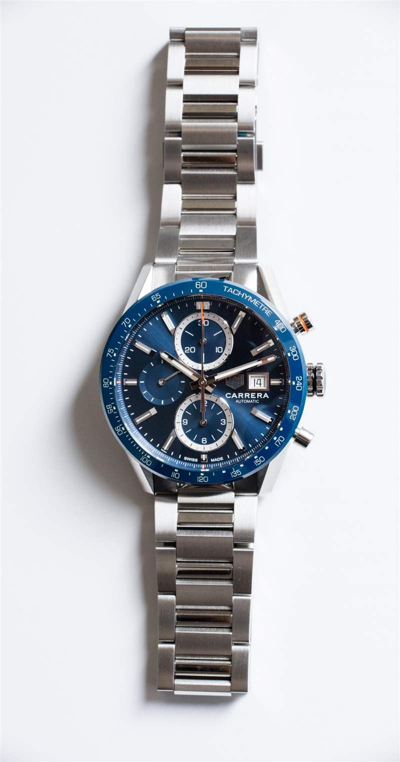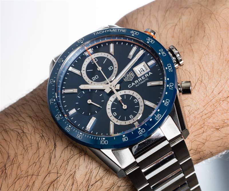 這款特殊的 Carrera Calibre 16 是類似的 TAG Heuer Carrera Calibre 16 CV201AR.BA0715 的姊妹型號,價(jià)格高出 50 美元(盡管我不知道為什么)。兩者都有相同的 41 毫米寬鋼表殼、相同的 Calibre 16 自動計(jì)時(shí)碼表機(jī)芯、相同的陶瓷表圈和相同的表鏈。讓它們與眾不同的是,泰格豪雅 Carrera Calibre 16 CV201AR.BA0715 具有更“復(fù)古風(fēng)格”的表盤(指針上帶有棕褐色發(fā)光體),而這款 CBM2112.BA0651 的風(fēng)格顯然更現(xiàn)代。廣告訊息廣告信息結(jié)束