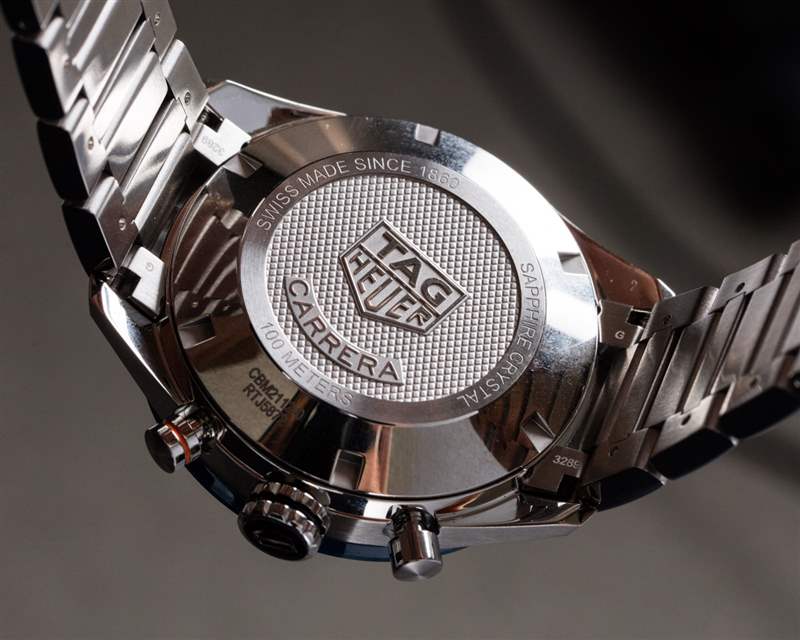 雖然手鏈很舒適,而且它確實(shí)有一個(gè)相對較小的折疊展開式表扣,但泰格豪雅可能會考慮在某個(gè)時(shí)候?yàn)?Carrera 手鏈添加更多功能。同樣,這并沒有錯(cuò),但今天的買家希望手鐲具有特殊功能,例如微調(diào)表扣、快速釋放系統(tǒng)或其他新穎性來幫助產(chǎn)品,但要更具特色。然而,我會說,從結(jié)構(gòu)的角度來看,手鐲是優(yōu)雅的,沒有面向外部的螺釘或銷釘,而且正如我上面提到的那樣,展開器并不比手鐲厚。我認(rèn)為 TAG Heuer 可能想嘗試一下 Tudor 對彈簧式 Pelagos 手鏈所做的事情。這是一種讓表鏈既舒適又安全的有效方法,但此后沒有人嘗試過類似的事情。