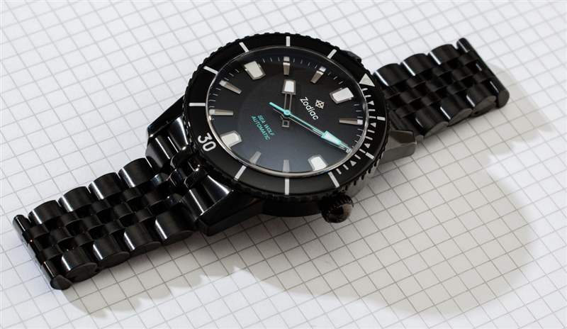 目前,一塊全黑的 Zodiac Super Sea Wolf 53 Compression Automatic 手表只比同樣型號的天然鋼表殼貴 100 美元。正如我所說,總體而言,這是一個相當不錯的價值。