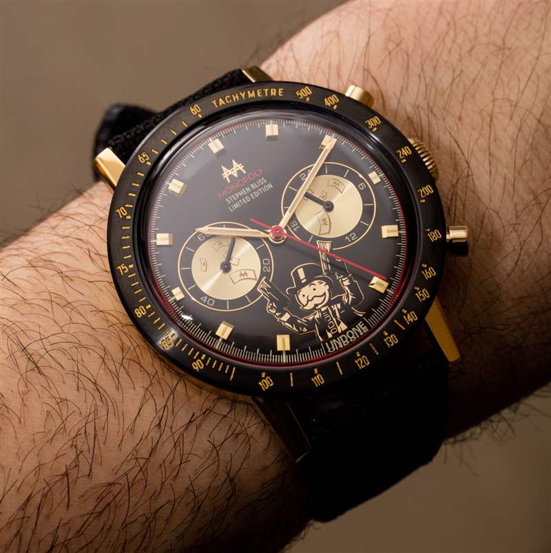 UNDONE在他們告訴我他們即將推出的 Monopoly 手表系列(aBlogtoWatch 在這里首次亮相)之前警告我說,“我們不確定這些是否適合你。”?對此我很感興趣,我說:“試試我。”?事實證明,總部位于香港的 UNDONE 不僅尋求使用孩之寶的 Monopoly 游戲許可證,還決定與著名藝術家和平面設計師Stephen Bliss合作開發這些 Monopoly 手表(以俠盜獵車手聞名)。個性三重奏(游戲、制表師、圖形藝術家)的結果根本無法立即預測。發布的(似乎是開始)是 UNDONE x Monopoly MONEYMAN 系列,藝術家 Stephen Bliss 將 Pennybags 叔叔的大蕭條時代角色重新想象為我們渴望“下雨”的化身英雄。