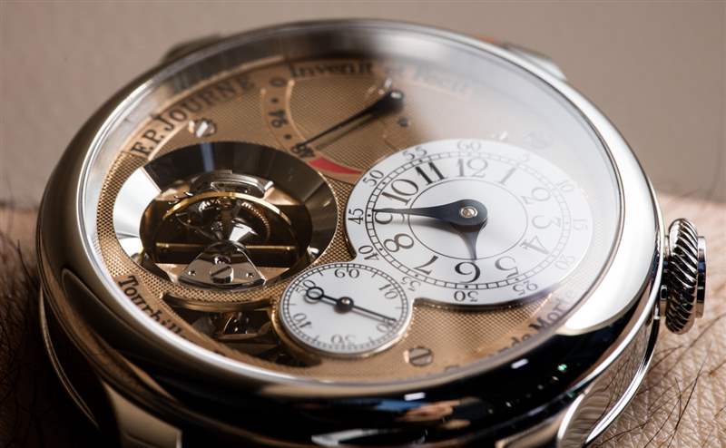 日內瓦制表商FP Journe最新推出的一款基于陀飛輪的手表也是他最實用的(嗯,至少是合乎邏輯的)。這款手表的官方名稱為 Tourbillon Souverain Calibre 1519,鑒于陀飛輪機構的方向,這款手表通常被稱為 FP Journe Vertical Tourbillon – 更多內容見下文。在這里,我們看到這款腕表配備鉑金表殼(也有 18k 玫瑰金表殼版本)搭配 18k 玫瑰金表盤和機芯。
