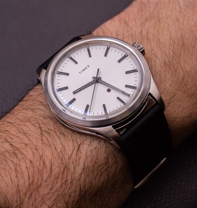 Galli 還設計了 S1 來調情(如果你愿意的話)。從正面直視表盤,S1 Automatic 看起來傳統優雅,從側面你可以看到有趣的鏤空結構——這是使用一種仍然不常見的表殼制造技術完成的:注塑成型金屬。這有助于將手表的成本保持在如此低的水平。大多數情況下,當一個箱子有這樣的細節時,這是因為每個單獨的箱子都是 CNC 加工的——這相對來說要貴得多。在這里,表殼形狀是通過注塑工藝制成的,最終產品只需要精加工。我無法想象即使是最頑固的勢利小人也無法理解 Timex 以這個價格對這個案子做了什么。