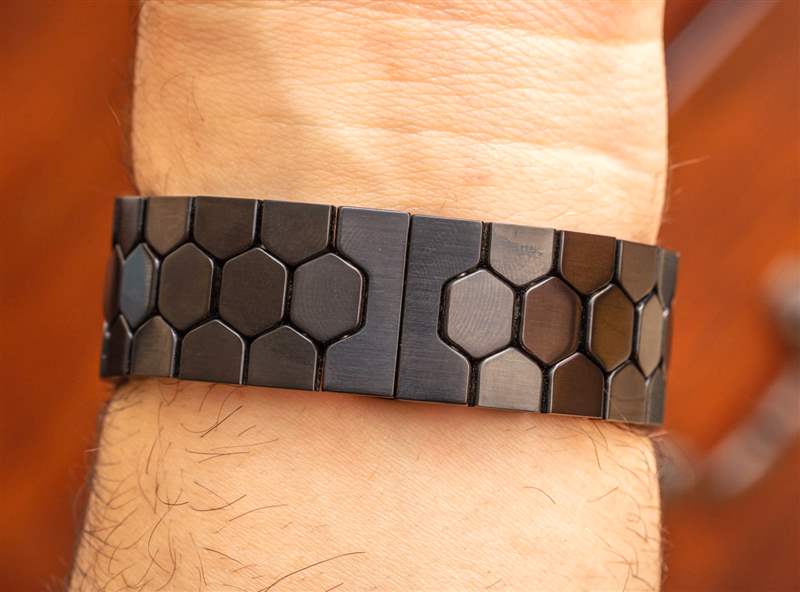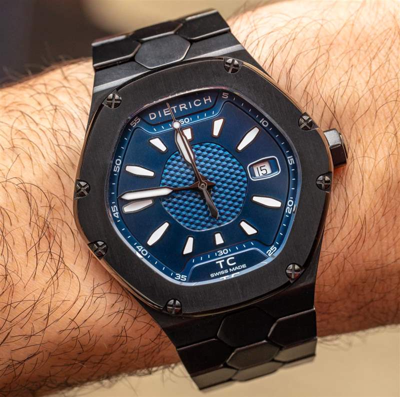 考慮到其相對年輕的年齡,TC 是一款設計精美的手表,具有一些怪癖。迪特里希最難做對的部分是手鐲。使用六角形鏈節,手鐲是一個絕妙的主意,可能仍需要幾代迭代設計,因為它確實是世界級的。手鐲已經擁有許多很棒的功能,例如與表殼完美結合的鏈節底部圓潤舒適。我審查的原始原型 TC 手表使用拉桿將手鐲鏈節連接在一起,但從那時起,Dietrich 顯然選擇了在手鐲上使用螺絲。手鐲閉合系統是一個簡單的蝴蝶式展開式表扣,它可以在您的手腕下提供良好的齊平佩戴體驗。然而,我確實,廣告訊息廣告信息結束