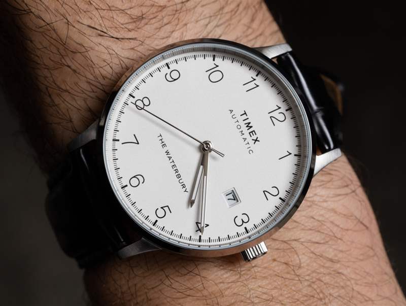 沃特伯里是 Timex 所在的康涅狄格州最初城市的名稱。此后,它把總部搬到了幾英里外,但品牌中的“沃特伯里”精神根深蒂固,這個品牌似乎適用于其更具“昨日風(fēng)采”的產(chǎn)品。沃特伯里經(jīng)典自動腕表看似簡單,但表盤的比例和易讀性非常好。它讀起來就像一個非常舒適的掛鐘——這是一件好事。阿拉伯小時數(shù)字環(huán)很吸引人,搭配大小合適的時針、分針和秒針。3點鐘附近的日期窗口稍微設(shè)置了一點,不需要移除3點鐘的小時標(biāo)記。階梯式日期窗口是一種微妙而精致的觸感,提升了時計的整體外觀。廣告訊息廣告信息結(jié)束
