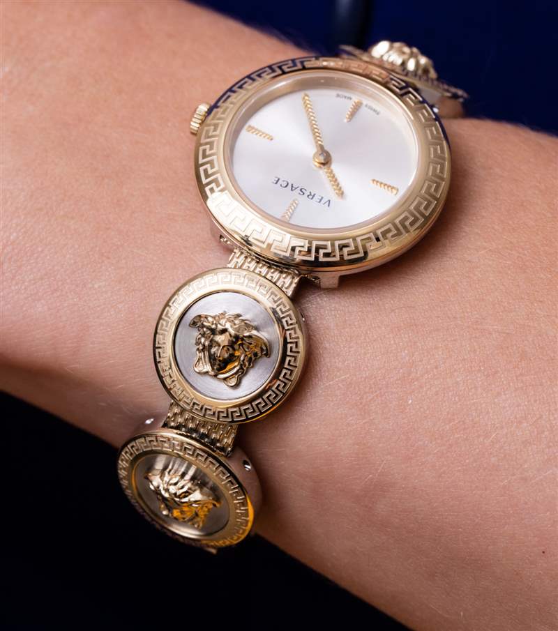 范思哲通過長期的設計和制造合作伙伴天美時集團生產手表已有一段時間了。在“時尚手表”的萬神殿中,與眾多同樣擁有手表的時尚品牌競爭對手相比,范思哲在哪里?這家著名的意大利時裝制造商由多年前在佛羅里達州邁阿密被謀殺的創始人的姐姐 (Donatella) 經營,一直以其獨特的美學而嗡嗡作響,這種美學通常圍繞著古代神話中的美杜莎主題展開。今天,我來看一款范思哲女士腕表,型號為 VERF000818 Versace Medusa Stud Icon。