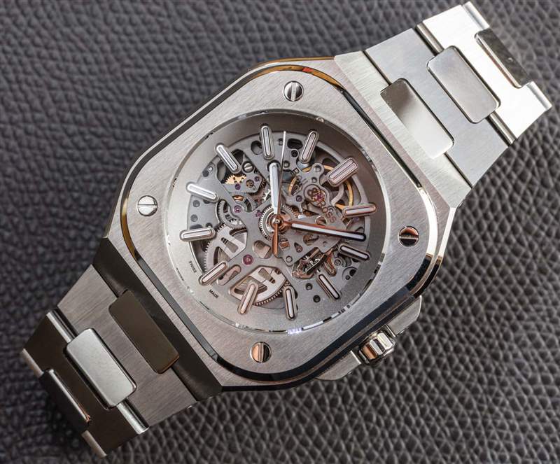 據我所知,BR 05 背后的設計之旅——完全由 Bell & Ross 內部完成——始于品牌自身的遺產。這意味著,Bell & Ross 并沒有受到飛行員手表、駕駛艙儀表、賽車、潛水設備等的啟發,而是受到啟發,為這一產品類別創造了自己的答案。結果很有趣,因為從表面上看,它深受 Gerald Genta 的啟發,但隨后您會發現其中許多設計元素出現在以前的 Bell & Ross 手表中。首先是向 Bell & Ross BR 01 致敬的方形表殼,而表鏈的鏈節則可以追溯到 Sinn 為它們生產的早期 Bell & Ross 手表。