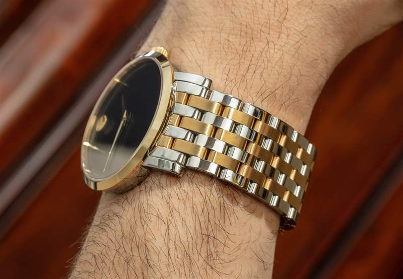 佩戴這款基于自動機(jī)芯的 42 毫米寬雙色 Movado Red Label 手表,感覺就像是昨天的博物館表盤,我今天想佩戴。如果我嘗試將它與我通常喜歡的工具手表進(jìn)行比較,那么我將很難評估這種手表的價值。我所做的是考慮博物館表盤的永恒美學(xué)價值,它的視覺吸引力繼續(xù)吸引我(可能還有其他人)。作為一款精致的時尚腕表、富有表現(xiàn)力的正裝腕表或男士珠寶腕表,摩凡陀博物館表盤的滿足方式幾乎與其他任何產(chǎn)品都不同。在“極簡主義”手表仍然非常流行的時代,也許是時候考慮一??款“原創(chuàng)”手表了。