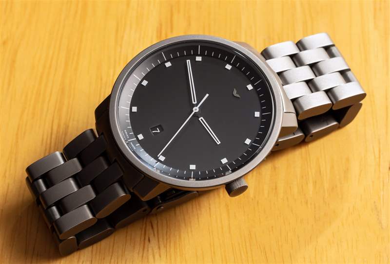 還必須考慮價格,但總的來說,我認為可以肯定地說 Ventura V-Matic EGO 遠勝于典型的 Kickstarter 時計。也就是說,我懷疑 Ventura 是否會依賴 Kickstarter 來購買太多(如果有的話)未來的手表,因為據我了解,該品牌或多或少已經建立起來。質量方面,您在匹配的手鏈上有一個深色啞光鈦金屬表殼。Ventura 為 V-Matic EGO 提供黑色和銀色表盤,以及配套的表鏈或黑色皮革表帶。銀色表盤很有趣,因為它的表面處理和藍色指針和時標。它可能是節目中的明星,但我想看看黑白表盤 V-Matic EGO,因為它讓我想起了我昨天美好回憶的 Ventura。