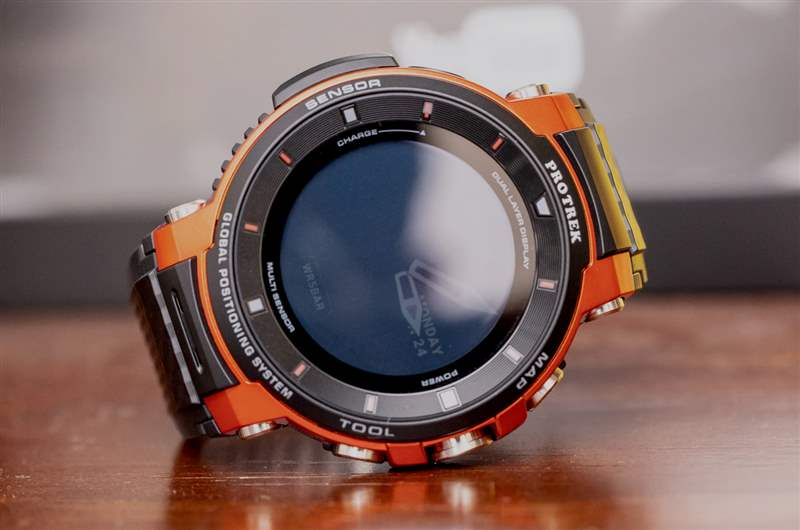 卡西歐聲稱 Pro Trek Smart WSD-F30 符合美國軍用規(guī)范 MIL-STD-810G 的環(huán)境耐用性,并且外殼防水深度達(dá) 50 米——這意味著您可以輕松地帶著它去游泳。該外殼有一系列傳感器開口(例如車載氣壓計(jì)),因此耐用性等級仍然令人印象深刻。這款手表沒有心率監(jiān)測器,但我認(rèn)為卡西歐將來會希望將它包括在內(nèi)。該品牌還有其他產(chǎn)品被指定為更適合鍛煉和健身。請記住,Pro Trek Smart 是一款探險(xiǎn)和導(dǎo)航手表,并非旨在用作健身設(shè)備。這并不意味著您不能使用 WSD-F30 進(jìn)行訓(xùn)練,而是卡西歐尚未滿足將心率監(jiān)測器作為其板載工具套件的一部分的需求。