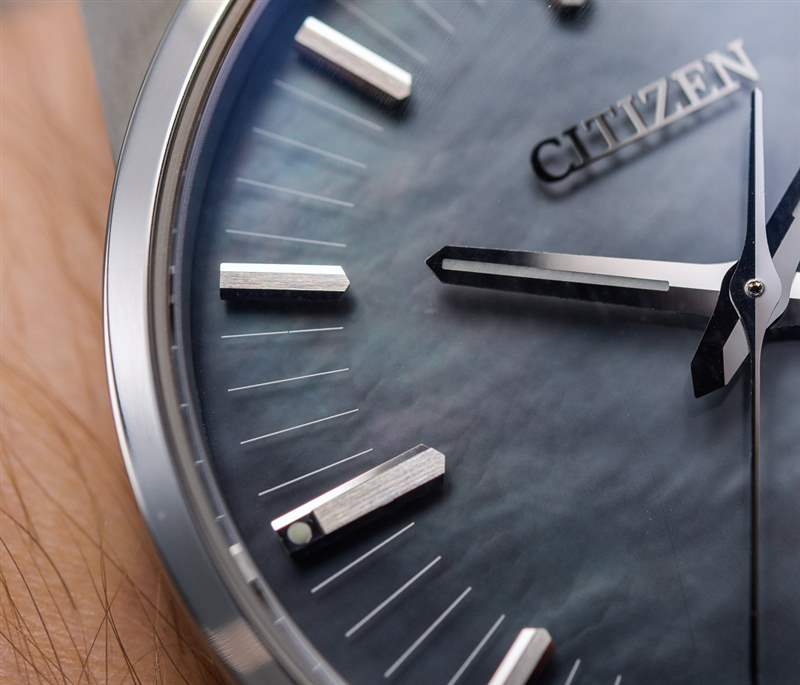 對于西鐵城的設計和工程團隊而言,Calibre 0100 機芯和時計概念是關于美麗和優雅,而不是試圖用高科技性能手表給收藏家留下深刻印象。該品牌特別選擇將其最精確的機芯與相對簡單但執行良好的設計相結合。表盤僅顯示時間,帶有完美拋光的應用時標,以及匹配的指針。