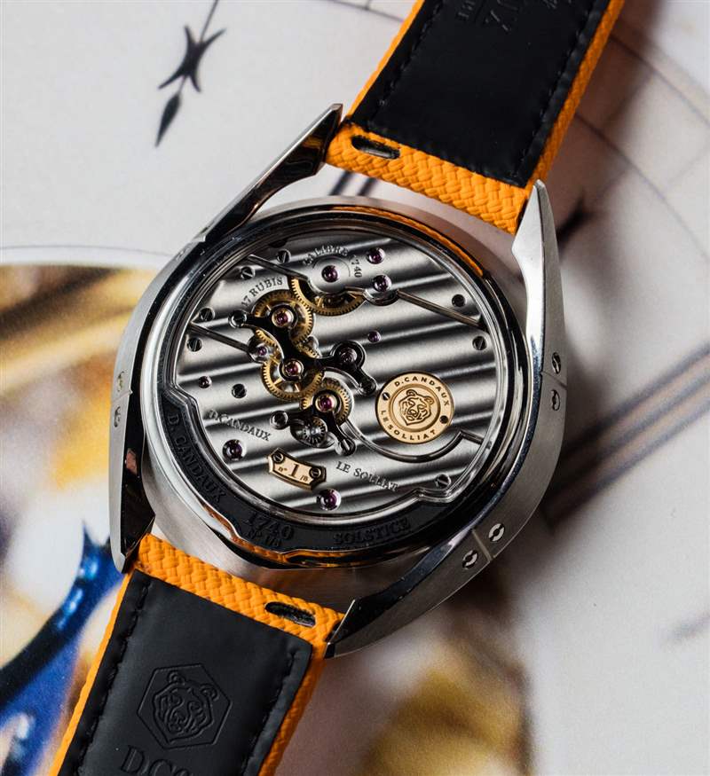 總部位于瑞士 Valle-de-Joux 的David Candaux是一個(gè)多代制表家族的一員。他住在制表大師和金屬裝飾師 Philippe Dufour 附近,他的作品在 Jaeger-LeCoultre、 MB&F(HM6 機(jī)芯)、Fonderie 47、Montandon等品牌的超豪華時(shí)計(jì)中占有重要地位。幾年前,他——和他的許多同時(shí)代人一樣——在自己的“D.?Candaux”的名字并發(fā)布了他的 DC 1 手表。迄今為止,他的每款時(shí)計(jì)都限量發(fā)行八枚。在 DC 1 模型之后,他繼續(xù)使用aBlogtoWatch 在這里親身體驗(yàn)的著名 D. Candaux DC6 半獵人.?2019 年,David Candaux 發(fā)布了 DC 6 Half Hunter 的新版本,即 DC 6 Solstice Titanium Half Hunter 1740(簡(jiǎn)稱(chēng)“DC 6 Solstice”),它更具俏皮感和現(xiàn)代感,色彩鮮艷,可作為限量版八件(每件),帶有紅色、藍(lán)色或橙色(如圖)。