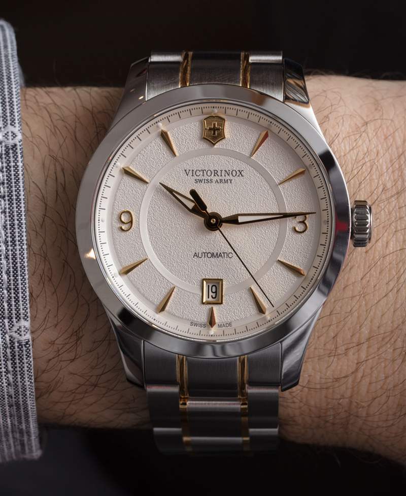 我最喜歡的 Victorinox Swiss Army Alliance Mechanical 版本是 ref。241874,這是手鏈上帶有黃色金色調的鋼。我的第二選擇是黑色皮革表帶上帶有白色表盤的 241871。這些產品非常適合精打細算的手表愛好者、剛開始收藏手表的人、漂亮的禮物,以及那些需要漂亮的“西裝手表”的人,不會因為“看我”的錯誤類型而尖叫“ 注意力。2019 年的其他新型號包括 Alliance Mechanical ref。241869 搭配黑色表盤和黑色皮革表帶,241870 搭配藍色表盤和棕色皮革表帶,最后是 241872 搭配藍色表盤和精鋼表鏈。