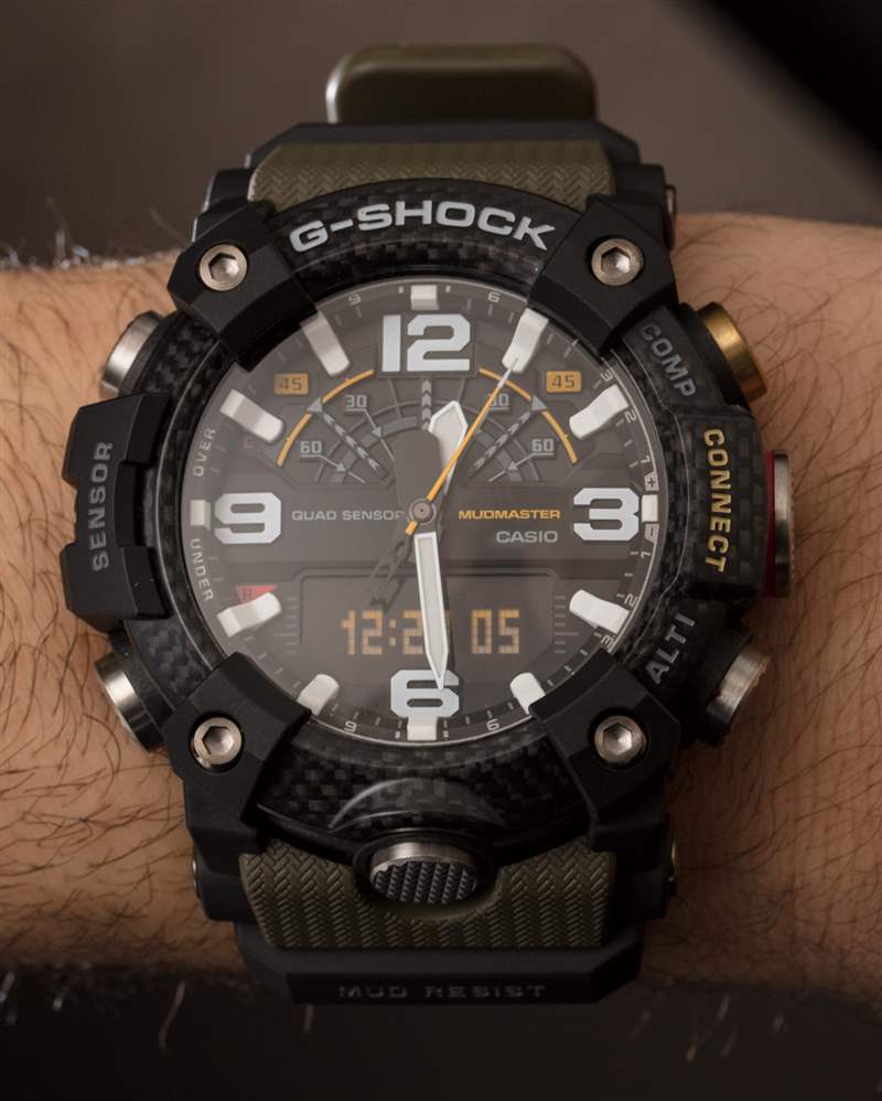 我們完全期待很快會看到更多配備全新 Quad Sensor 系統的卡西歐 G-Shock 手表,并且已經在 2019 年,其他卡西歐手表受益于新的 Carbon Core Guard 表殼結構。同樣,這不僅可以實現更緊湊的表殼結構,仍然具有“G-Shock 耐用性”,而且還可以提供更輕、更實用、更舒適的手腕佩戴體驗。在經典的 Mudmaster 卡其綠色中,參考。GGB100-1A3 是新款 Mudmaster GG-B100 的標準版,未來可能會推出更多顏色版本。