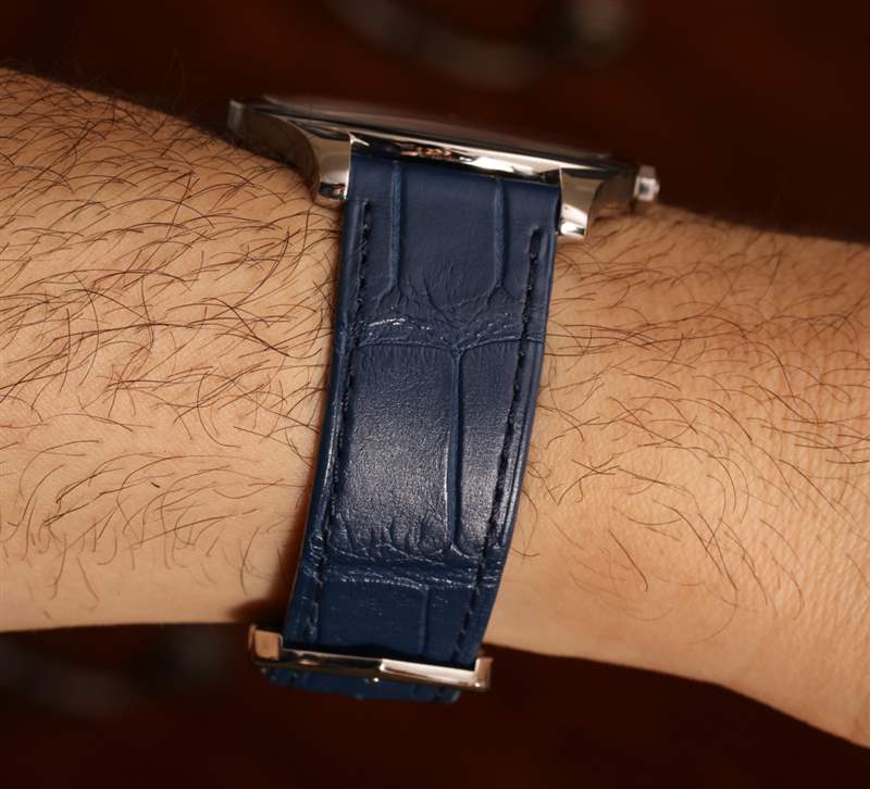 “超平坦”有多平坦?Drive Extra-Flat 腕表采用手動上鏈機械機芯,厚度僅為 6.6 毫米,寬度為 39 毫米,表耳到表耳的距離為 44 毫米。這帶來了一種謹慎而明顯的手腕佩戴體驗,并且由于包耳而帶來的舒適感。從尺寸角度來看,“標準”Drive De Cartier 手表帶有時間、輔助秒針表盤、日期和內部制造的自動機芯,厚度為 11.25 毫米,寬度為 41 毫米。兩者都非常舒適且非常耐磨,但在我看來,Drive 目前在這款纖薄且最小化的雙手“Extra-Flat”變體中效果最佳。