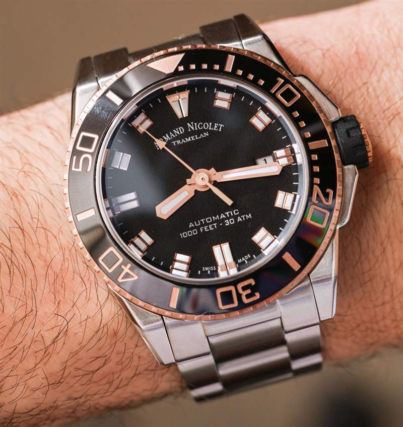 2018 年,瑞士手表品牌Armand Nicolet發(fā)布了 JS9 系列的全新潛水表系列。幾乎每個手表品牌都在嘗試在價值和風(fēng)格主張方面做出更好的潛水表。為什么?具有個性的運動型/功能型/表現(xiàn)力工具表是目前奢侈鐘表消費者最需要的。那么讓我們看看 JS9 的表現(xiàn)如何。今天要評測的是 Armand Nicolet JS9 參考 A480ASN-NS-MA4480AA(一口),它是 JS9,帶有匹配的鋼表鏈,黑色和玫瑰金色調(diào)。這是 2018 年的新系列,在十幾個可用的變體中,我碰巧最喜歡這個模型的外觀和易讀性。