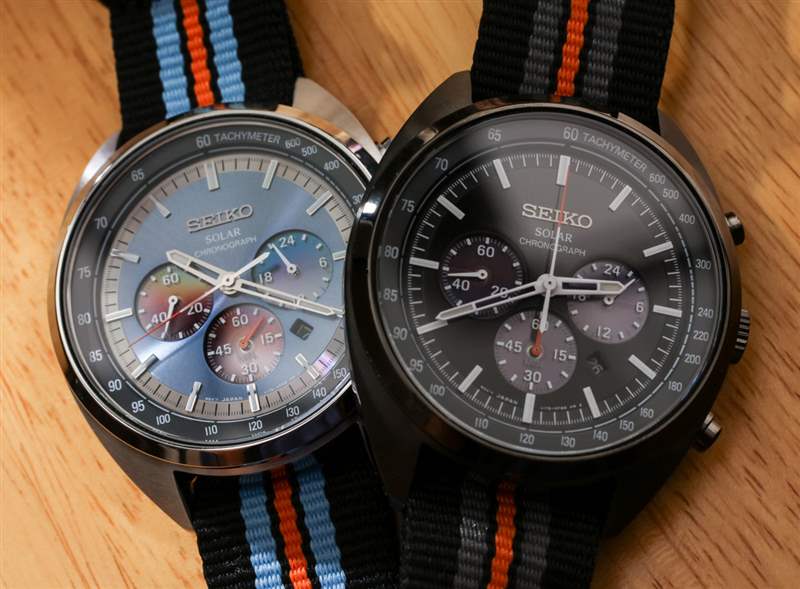 Recraft Solar Chronograph SSC667 和 SSC669 僅在顏色上有所不同,但由于采用 IP 涂層黑色外殼,SSC669 的價(jià)格要貴 25 美元。該型號(hào)的表盤(pán)是黑色的,帶有高對(duì)比度的白色指針和時(shí)標(biāo)。橙色作為強(qiáng)調(diào)色看起來(lái)不錯(cuò)。SSC667 采用天然精鋼表殼和略帶光澤的金屬藍(lán)色表盤(pán)。精工通過(guò)使指針變?yōu)榛疑珌?lái)確保指針適合主題,但也通過(guò)使指針和時(shí)標(biāo)在紋理上啞光來(lái)做正確的事情,以免反射光線(xiàn)。在我看來(lái),這兩款都是漂亮的手表,黑色的 Recraft Solar Chronograph SSC669 更加強(qiáng)壯和陽(yáng)剛,而 SSC667 的吸引力更加現(xiàn)代和俏皮。現(xiàn)在我們所需要的只是讓收藏家想出一些粘人的名字,讓這些精工 Recraft 手表在命名方面更具個(gè)性。