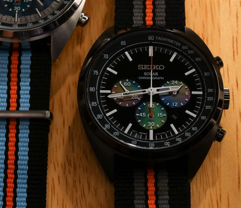 作為手表愛(ài)好者,我非常感謝精工在這些 Recraft Solar Chronograph 手表的表盤(pán)設(shè)計(jì)上付出了多少努力。深度是通過(guò)具有各種層以及應(yīng)用的小時(shí)標(biāo)記來(lái)創(chuàng)建的。表盤(pán)周?chē)且粋€(gè)凸起的rehaut,帶有最小的測(cè)速刻度,指針都具有出色的對(duì)比度,計(jì)時(shí)碼表子表盤(pán)略微凹陷。精工也沒(méi)有在表盤(pán)上添加任何僅僅是裝飾性的東西。這些都是非常復(fù)古的工具手表,其吸引力和缺乏裝飾元素是其中的一部分。請(qǐng)注意,這與許多其他 Seiko Recraft 型號(hào)形成鮮明對(duì)比,后者非常專(zhuān)注于重現(xiàn)過(guò)去更具藝術(shù)性的表盤(pán)。實(shí)用手表愛(ài)好者會(huì)欣賞這種精工對(duì) Speedmaster 美學(xué)的詮釋。