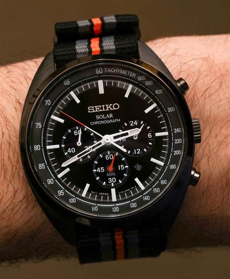 Seiko SSC667 和 SSC669 手表內(nèi)部裝有 Seiko 內(nèi)部 V175 機(jī)芯。它配備了一個(gè) 60 分鐘計(jì)時(shí)碼表、一個(gè)掃秒秒針、一個(gè)小秒盤(pán)、一個(gè) 24 小時(shí)指示器和日期。精工巧妙地設(shè)計(jì)了手表的表面,使子表盤(pán)實(shí)際上是光線(xiàn)通過(guò)表盤(pán)進(jìn)入下方的光伏電池,從而為電池充電。這些大多不透明的窗口在光線(xiàn)下閃爍著一點(diǎn)點(diǎn),有時(shí)讓我想起表盤(pán)上黑色珍珠母貝的外觀(guān)。這是一個(gè)有吸引力的外觀(guān)。精工還通過(guò)將日期放在黑色光盤(pán)上(我認(rèn)為這是個(gè)好主意)來(lái)很好地淡化日期。指針和時(shí)標(biāo)涂有 Seiko 的 LumiBrite 發(fā)光體。
