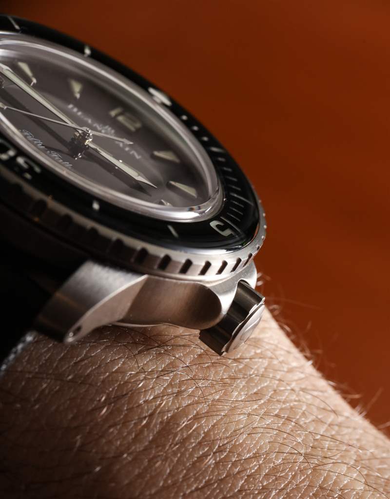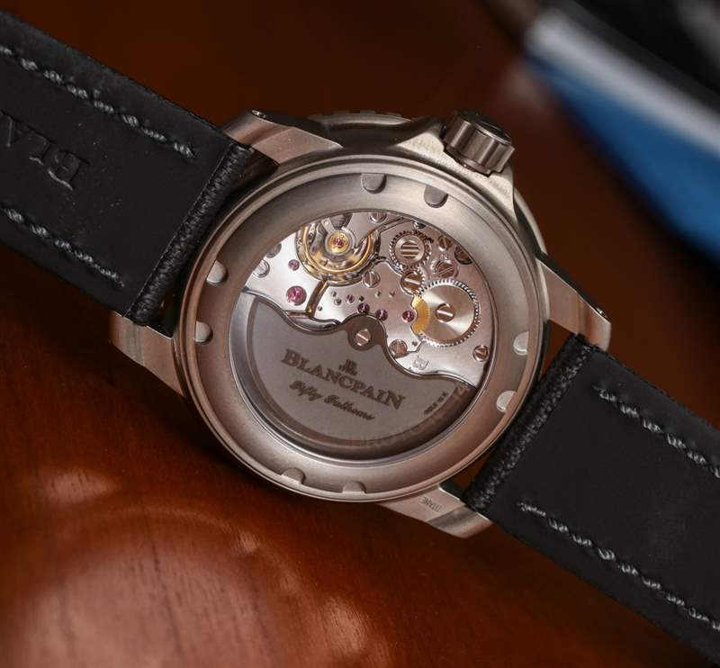 我非常欣賞這種機械機芯,我們現在可以通過這款五十噚型號的底蓋查看它。然而,我很遺憾寶珀使用了更通用的寶珀品牌轉子設計,而不是更貼近潛水表的主題。以前的型號有一個形狀像鸚鵡螺殼的自動轉子。在我看來,這樣的事情會讓收藏家與這只手表形成更緊密的情感紐帶。最后,我想補充一點,因為硅游絲,5050(和5015一樣)是一款“防磁”手表,具有良好的抗磁場水平。