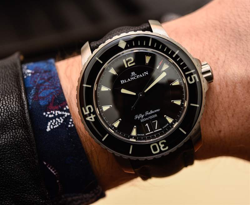 Blancpain的五十噚系列高端潛水表一直是我最喜歡的豪華運動手表系列之一。在 2018 年巴塞爾國際鐘表珠寶展上,寶珀推出了五十噚系列中的一些新型號,其中包括我最喜歡的這款寶珀五十噚 Automatique Grande Date 5050。讓我們將五十噚 5050 與仍然相當受歡迎的寶珀五十噚 5015 進行比較,我在 aBlogtoWatch 上對其進行了評論這里.?5050 是一款更新的型號,具有更新的機芯和不同的表殼材料。話雖如此,它不是 5015 的替代品,而是一種額外的風味。目前形式的五十噚系列無疑是一個老化的模型(最初于 2007 年首次亮相)——盡管它在上市十多年后表現良好。2018 年五十噚 Grande Date 5050 可能不會讓 5015 的所有者“升級”,但它可以很容易地讓更多人佩戴這款真正有吸引力且性能良好的高端瑞士潛水表。